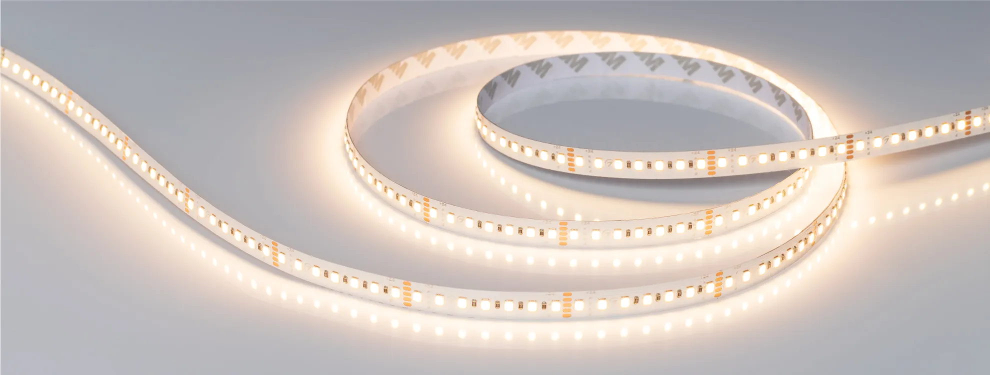 Лента поставляется в катушках по 5 м. Для подключения требуется блок питания 24 В, мощность которого подбирается с запасом 25% от суммарной нагрузки.