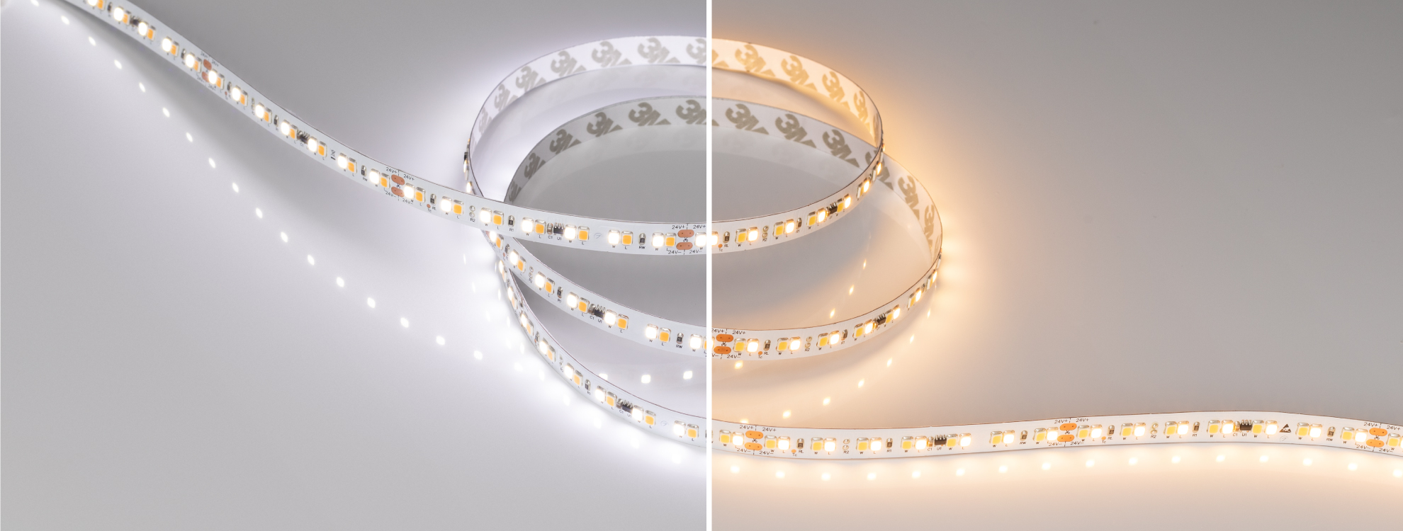 Одна лента сочетает в себе три цвета свечения: теплый белый (2700 К), дневной белый (4000 К) и холодный белый (6000 К).