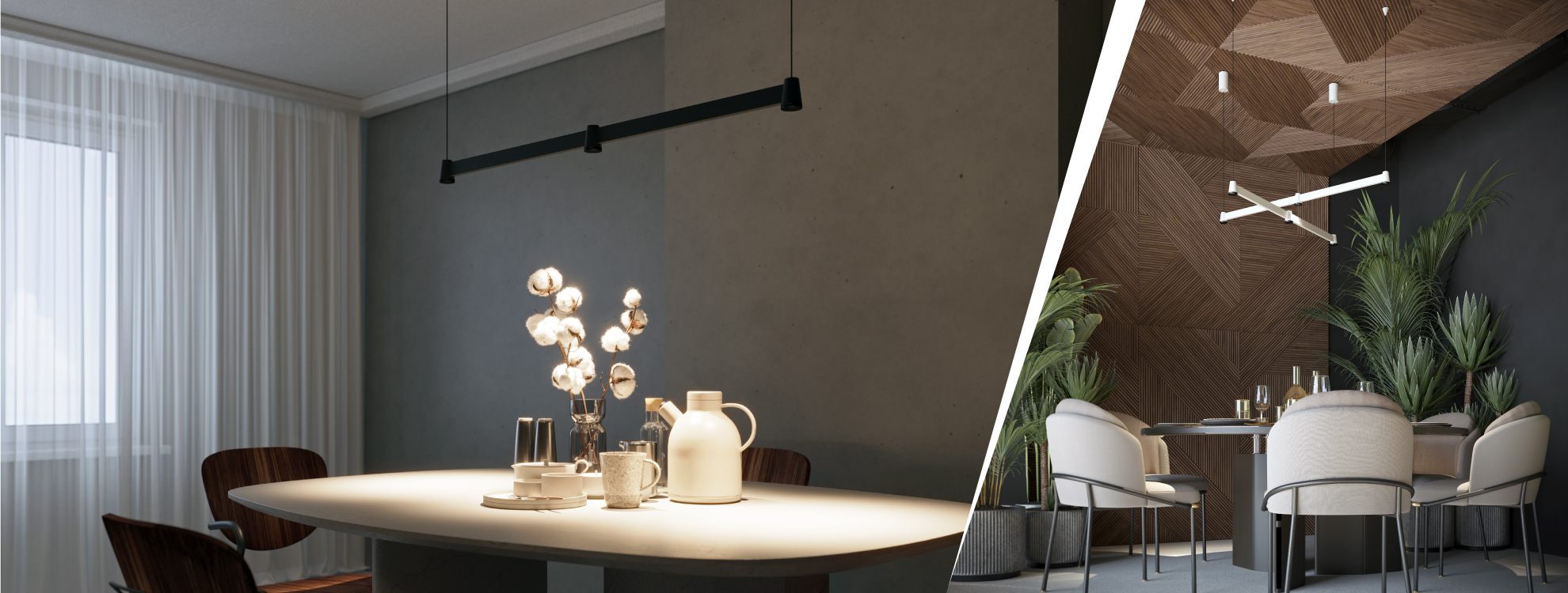 Интерьерный подвесной светильник с минималистичным сбалансированным дизайном. Предназначен для освещения торговых, офисных, жилых и других помещений.