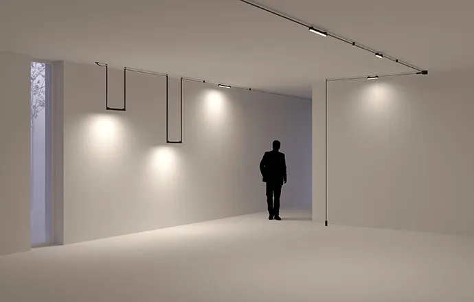 Светильники доступны в двух вариантах длины — 210 и 413 мм, благодаря чему их можно использовать в оформлении различных интерьеров. Разнообразие аксессуаров позволяет выбирать точки крепления системы на любой поверхности (пол/потолок/стена).