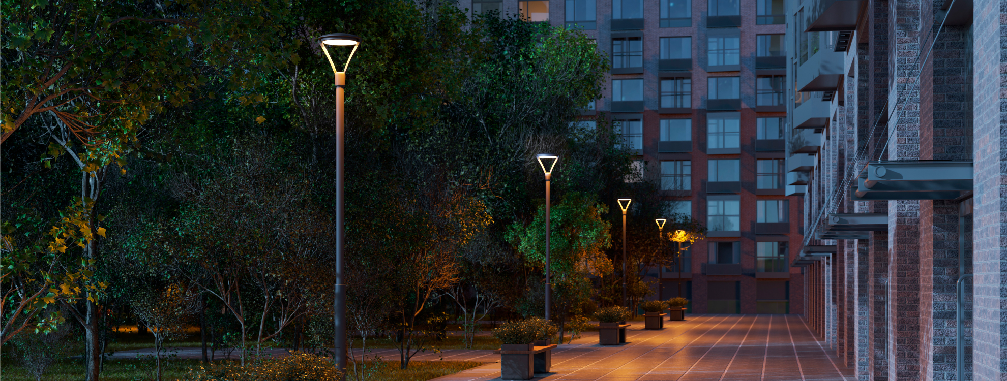 OSARIS — особый элемент ландшафтного дизайна. Теплое свечение 3000 K распределяется под углом 145×60°, наполняя пространства парков, скверов, пешеходных зон и набережных уютным светом для вечернего отдыха. Лаконичный дизайн также позволяет использовать светильники для освещения парковок и коттеджных поселков. Черный фигурный корпус изготовлен из алюминия.