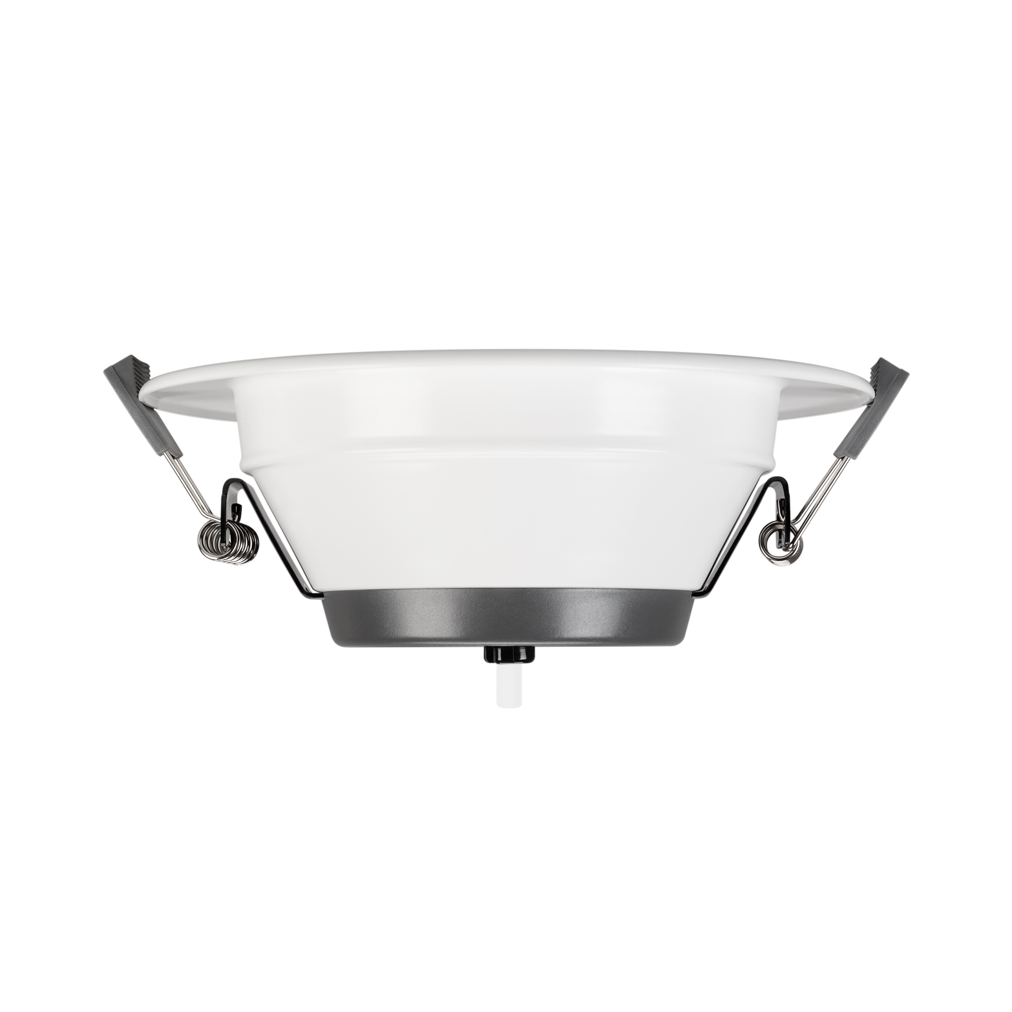 Встраиваемый круглый светильник предназначен для освещения в жилых, коммерческих и общественных помещениях. Индекс цветопередачи CRI>80 обеспечивает качественное освещение с точной передачей цветов. Алюминиевый корпус, окрашенный в белый цвет, будет гармонично смотреться в любом интерьере. Особая конфигурация корпуса позволяет эффективно отводить тепло и продлевает срок службы светодиодов. Матовый экран создает равномерное освещение без видимости точек светодиодов. Светильник с широким углом излучения 90 градусов подойдет для общего освещения помещений. Легко устанавливается в натяжные или гипсокартонные потолки с помощью пружин в монтажное отверстие. В комплекте поставляется драйвер, что позволяет безопасно и быстро подключать светильник напрямую к сети переменного тока 230 В. Корпус с защитой от пыли на уровне IP 40 применим для помещений, в которых отсутствует контакт с водой или другими жидкостями. Имеется возможность диммирования при замене штатного драйвера.