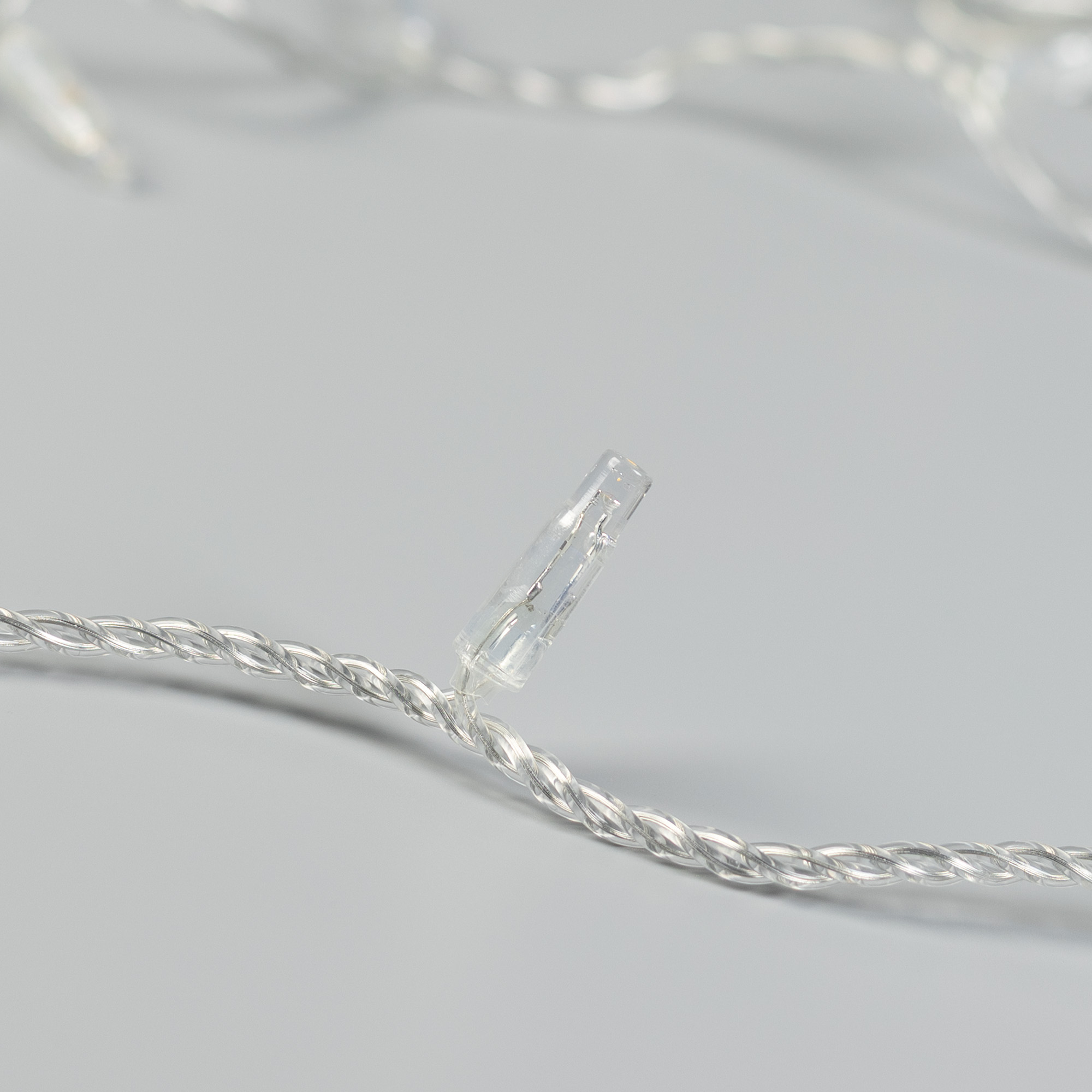 Универсальная светодиодная гирлянда "НИТЬ" серии Classic, предназначенная для декорирования и создания праздничного настроения как внутри помещений, так и снаружи (степень пылевлагозащиты IP65 позволяет размещать гирлянду на улице под навесом). Имея длину 10000 мм, она может использоваться для оформления средних и больших площадей. Универсальные соединительные разъемы позволяют наращивать длину до 50 м без использования дополнительных аксессуаров. Прозрачная вогнутая линза и эффект мерцания редких точек обеспечивают яркое и динамичное освещение, выделяя украшаемые объекты. Холодный белый свет помогает создать необходимую атмосферу для декоративного объекта. Провод прозрачный изготовлен из ПВХ. Аксессуар для подключения гирлянды к сети приобретается отдельно.