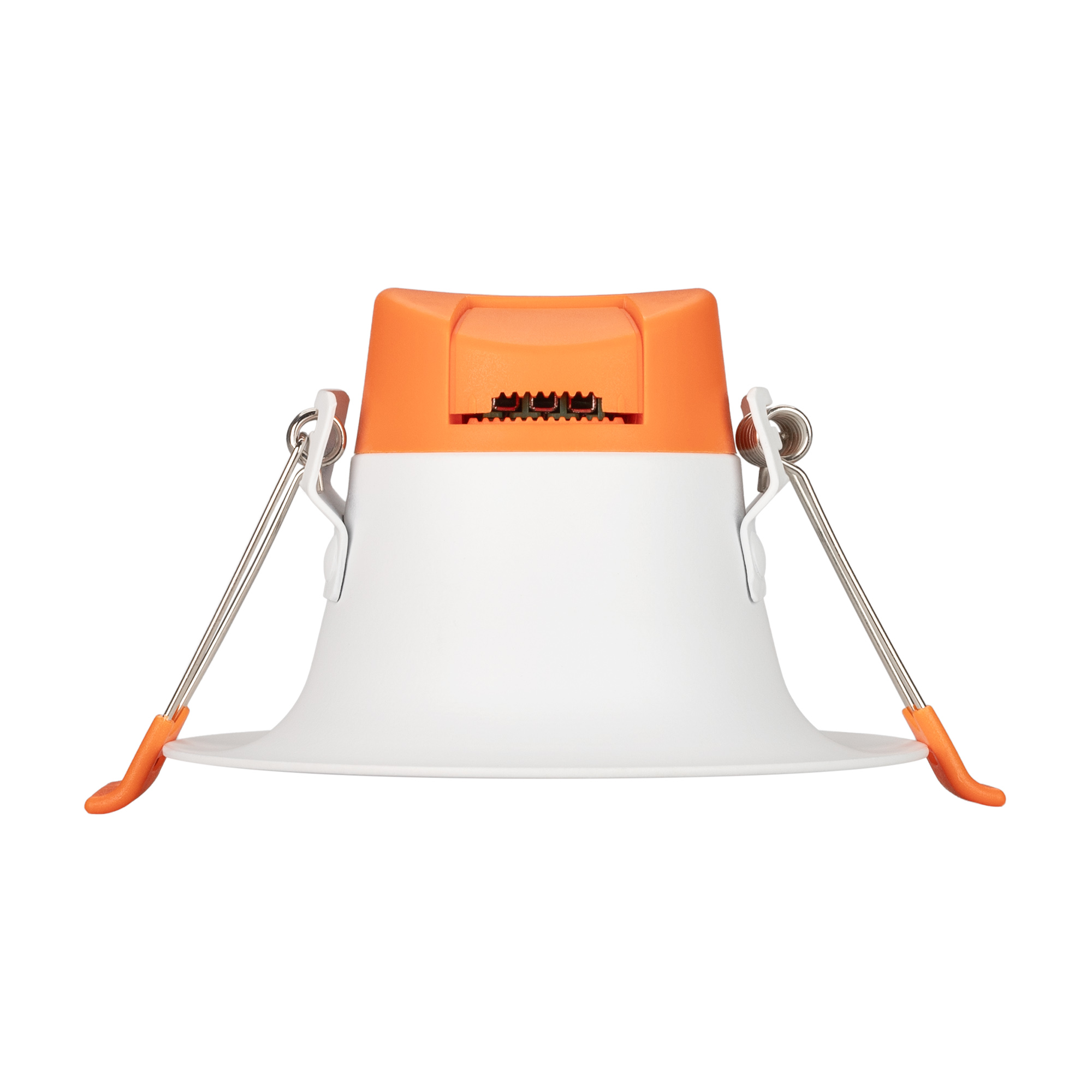 Встраиваемый светильник даунлайт с интегрированным в корпус драйвером. Мощность 7.6 Вт, св. поток 610 лм, 80 лм/Вт, тёплый 3000 K, CRI>90, угол 100°, напряжение питания 230 В. Белый круглый корпус из алюминия, степень защиты IP20. Размер: диаметр 102 мм, высота 63 мм. Монтаж встраиваемый, установочное отверстие: диаметр 90 мм. Пульсация <3%.
