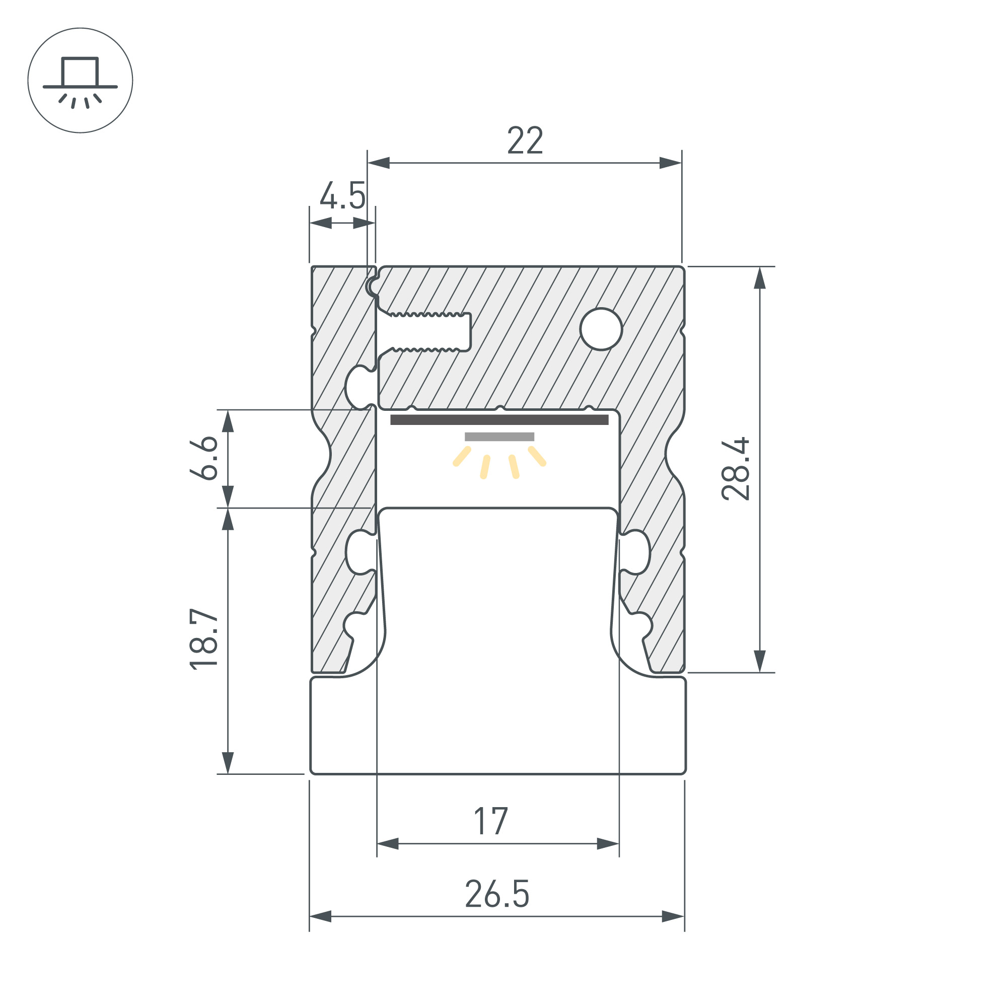 Алюминиевый светотехнический профиль для установки светодиодной ленты или линейки. Цвет серебристый. Длина 2000 мм, размер сечения 26,5х28,4 мм. Может использоваться как внутри помещений, так и снаружи (для оформления наружных стен). Устойчив к стандартным нагрузкам для полов, встраиваемый монтаж с помощью держателей или профиля-держателя (приобретаются отдельно). Рассеиваемая тепловая мощность 29,6 Вт/м позволяет подобрать источник света необходимой яркости и температуры свечения и реализовать самые интересные решения. Профиль охлаждает светодиодную ленту, продлевая срок её службы и сохраняя яркость, а также защищает от воздействия пыли, влаги и других внешних факторов. Высококачественное анодированное покрытие защищает профиль от внешних воздействий и коррозии. Светотехнический профиль - отличное решение для создания современных световых проектов.