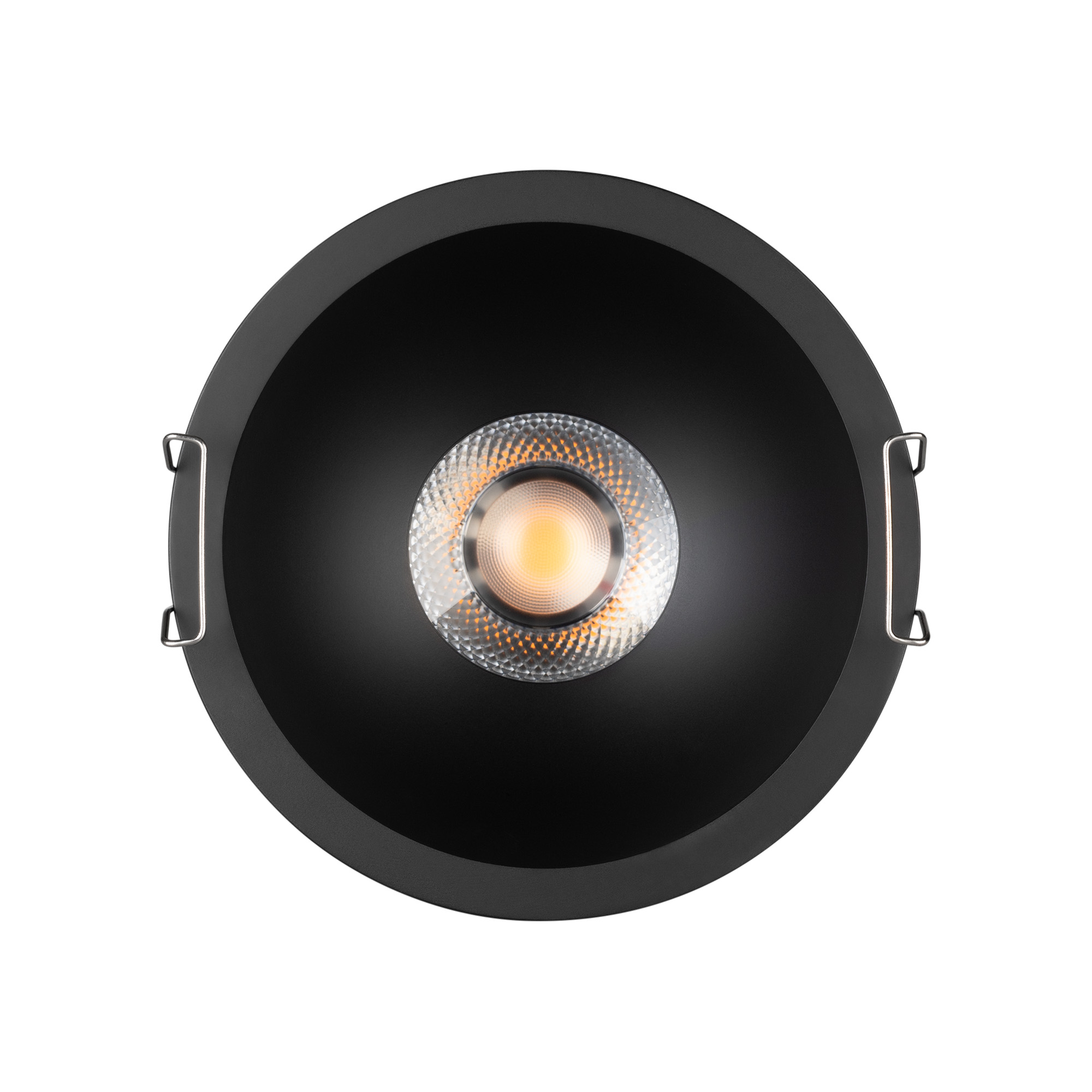 Встраиваемый светильник даунлайт. Мощность 20 Вт, св. поток 1810 лм, 90 лм/Вт, тёплый 3000 K, CRI>90, угол 36°, напряжение питания 230 В. Чёрный круглый корпус из алюминия, степень защиты IP20. Размер: диаметр 123 мм, высота 68 мм. Монтаж встраиваемый, установочное отверстие: диаметр 110 мм. UGR<14. Драйвер 27-42 В, 500 мА, пульсация <2%.