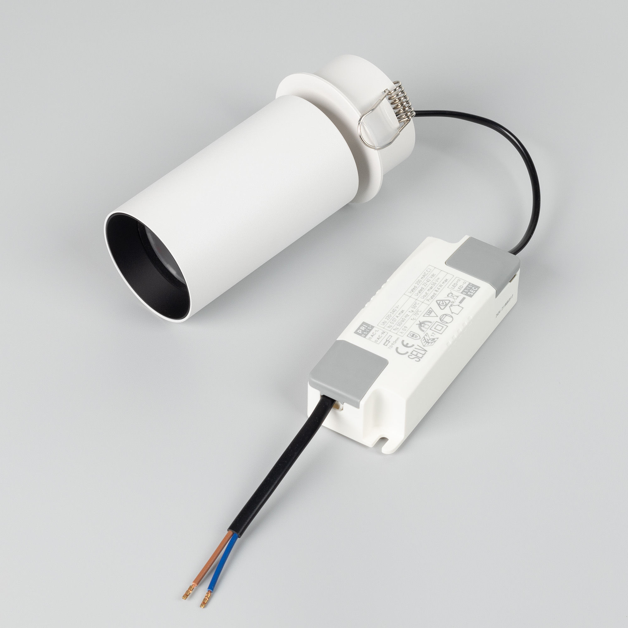 Светильник встраиваемый откидной. Мощность 9 Вт, св. поток 650 лм, 72 лм/Вт, дневной 4000 K, CRI>90, угол 60°, напряжение питания 230 В. Белый круглый корпус из алюминия, экран PMMA, степень защиты IP40. Размер: диаметр 50 мм, высота светового модуля 90 мм, высота основания 1,5 мм. Угол поворота 350°, угол наклона 90°. Монтаж встраиваемый, установочное отверстие: диаметр 55 мм, глубина 26 мм. Драйвер в комплекте 22-42 В, 200 мА, пульсация <1%.