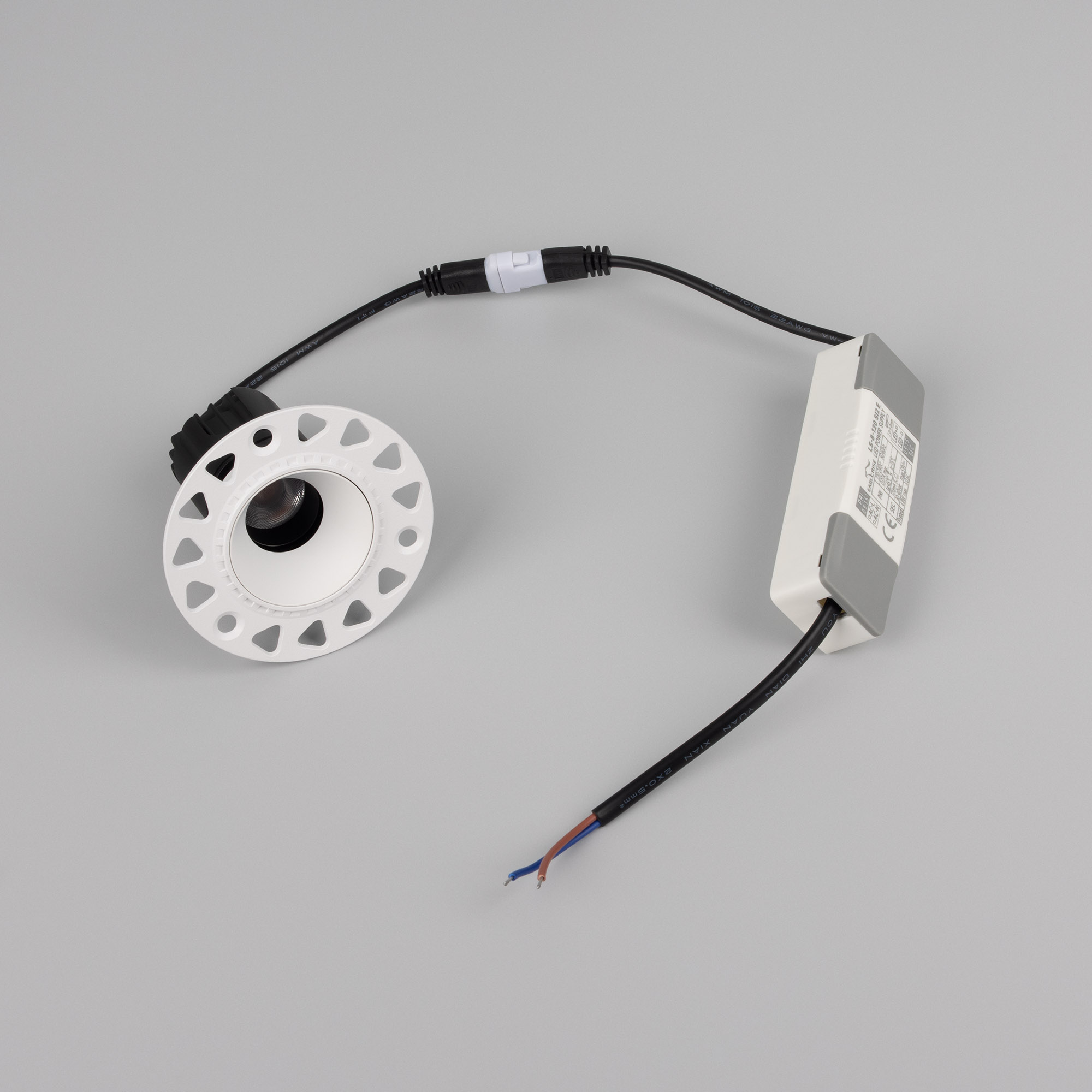 Встраиваемый светильник даунлайт. Мощность 5 Вт, св. поток 280 лм, 56 лм/Вт, теплый 3000 K, CRI>92, угол 36°, напряжение питания 230 В. Белый круглый корпус из алюминия, белый матовый отражатель, степень защиты IP20 . Размер: диаметр 75 мм, высота 66 мм. Монтаж встраиваемый, установочное отверстие: диаметр 45 мм. Драйвер, 27-40 В, 120 мА, пульсация <1%.