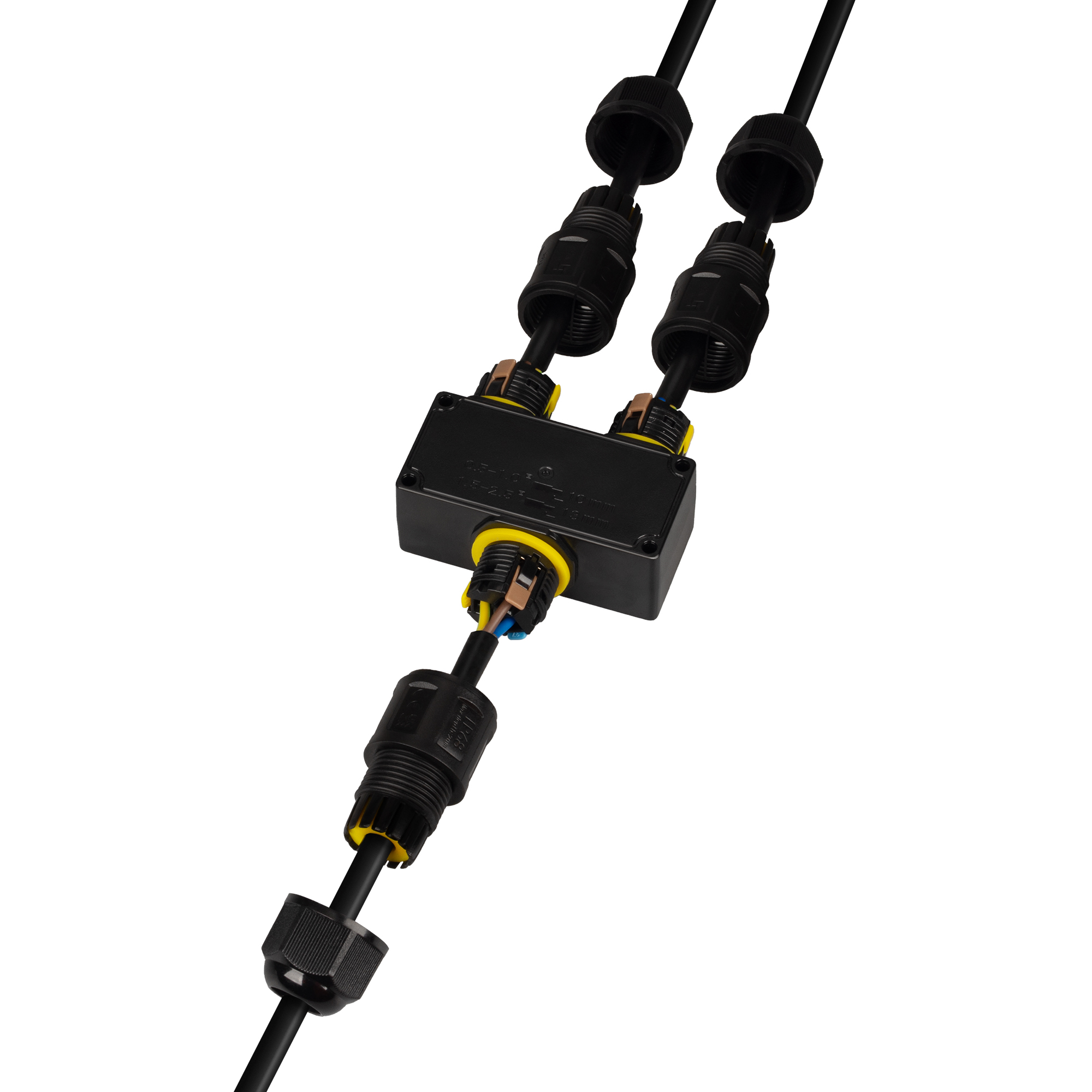 Подходит для подключения питания в условиях, где необходимо обеспечить герметичность соединения, в том числе к большинству светильников наружного освещения, для подключения гибкого неона MOONLIGHT и герметичных светодиодных лент. Коннектор позволяет осуществлять подключение для двух лент/гибкого неона/светильников.