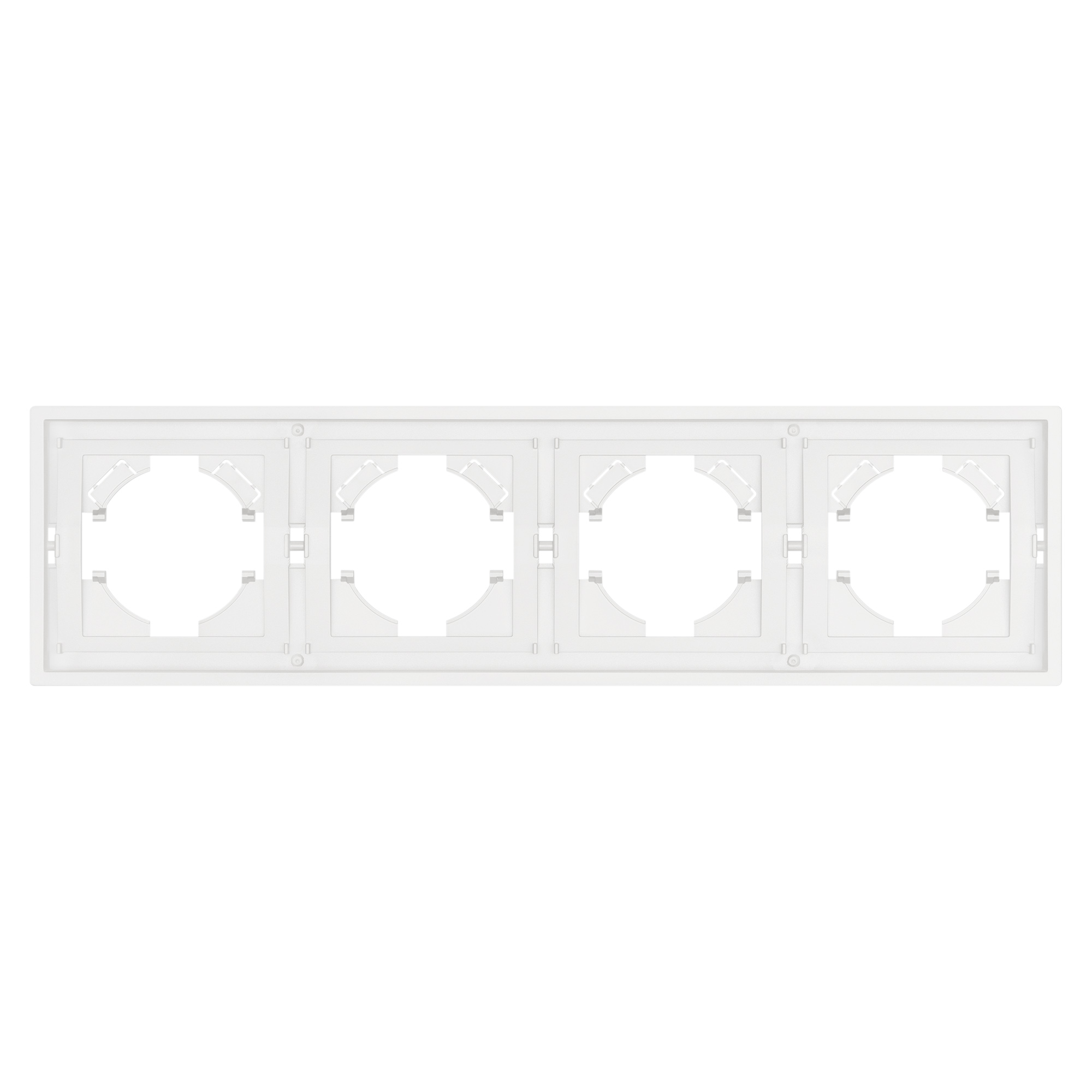 Рамка пластиковая на 4 поста, под встраиваемый механизм. Цвет - белый, с Soft-Touch покрытием. Среднего уровня герметичности IP20. Ориентация монтажа горизонтальная.
