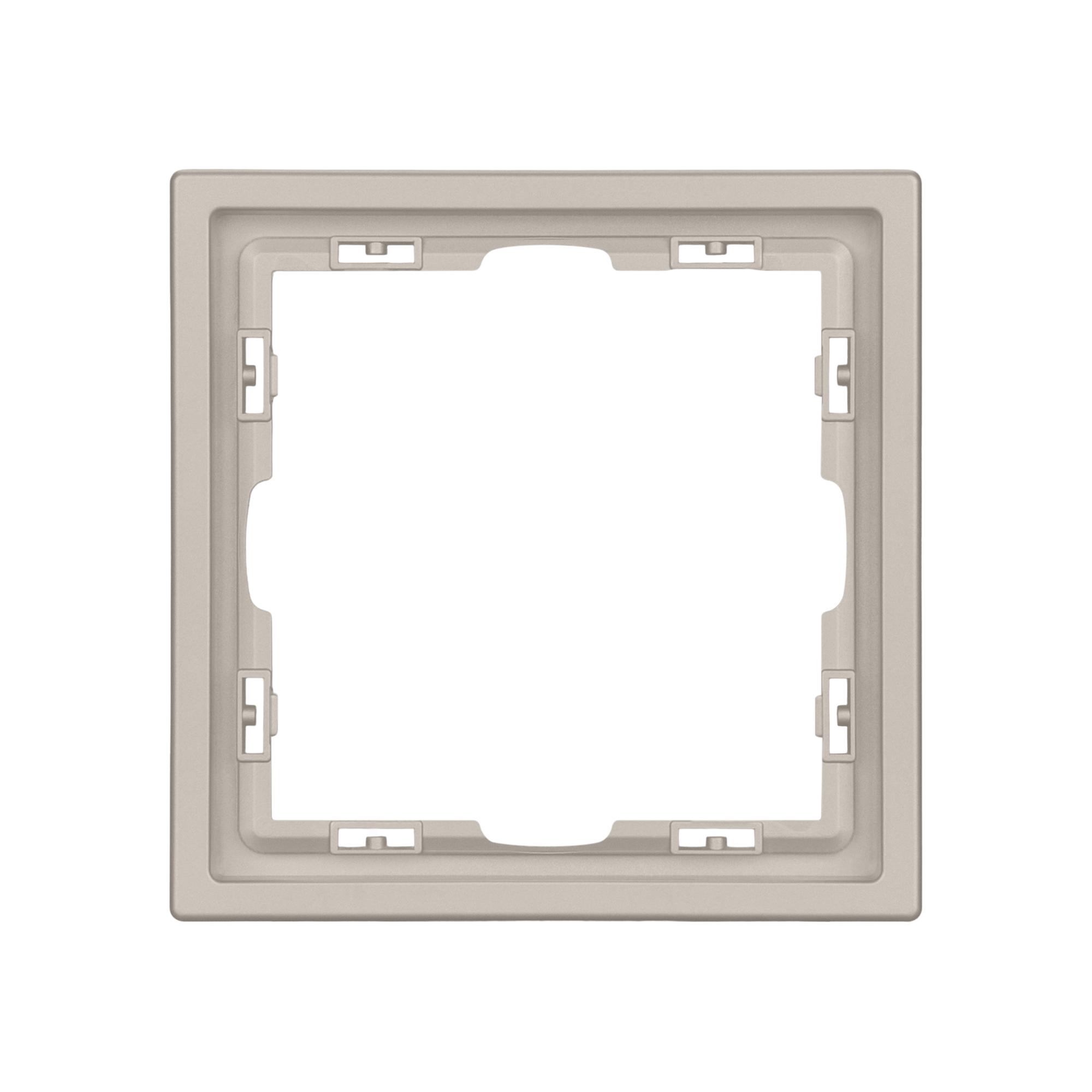 Корпус рамки выполнен в цвете кашемир и имеет покрытие Soft-Touch, что придает изделию приятные тактильные свойства. Толщина корпуса составляет 8,5 мм, что позволяет эффективно интегрировать рамку в интерьерные решения любого уровня сложности.