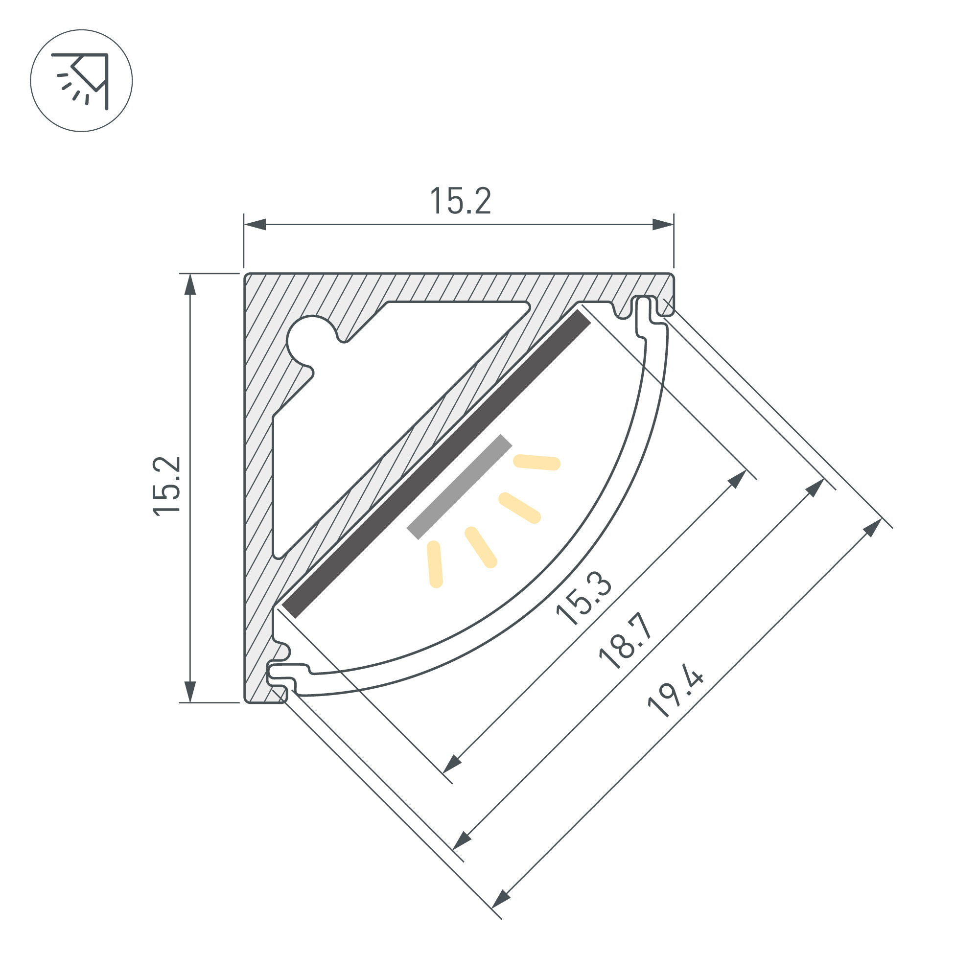 Алюминиевый анодированный светотехнический профиль угловой формы специально предназначен для установки светодиодных лент или линеек. Длина 3000 мм, сечение 15,2х15,2 мм. Профиль применяется для создания декоративного освещения в интерьерах. Монтаж осуществляется накладным способом с помощью специальных держателей. Предлагаются дополнительные аксессуары (экраны, заглушки и т.д.), позволяющие создать готовый светильник. Профиль охлаждает светодиодную ленту, продлевая срок её службы и сохраняя яркость, а также защищает от воздействия пыли, влаги и других внешних факторов. Высококачественное анодированное покрытие защищает профиль от внешних воздействий и коррозии. Цена указана за 1 метр профиля. Светотехнический профиль - отличное решение для создания современных световых проектов.