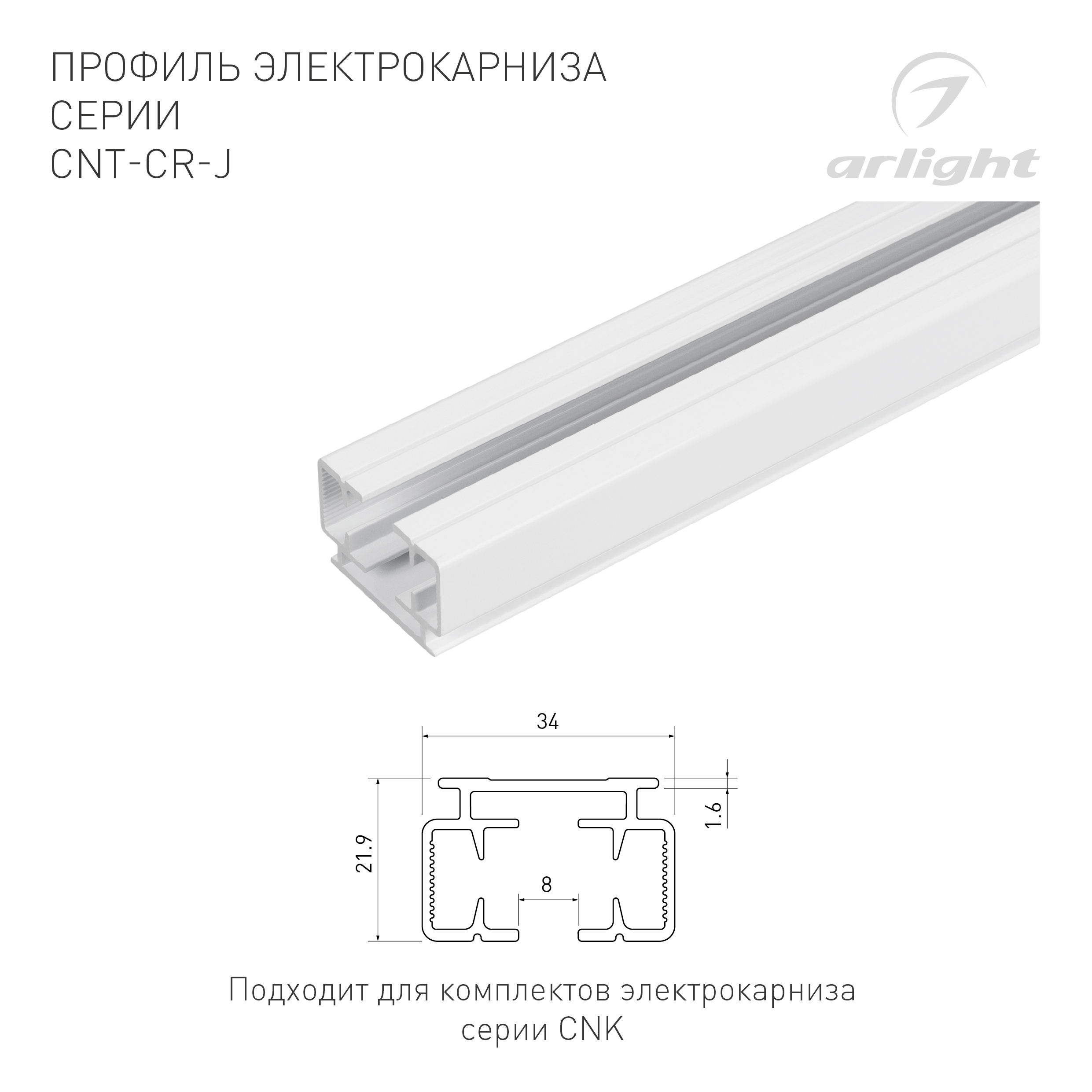Профиль электрокарниза CNT-CR-J-2m (Arlight, Алюминий)