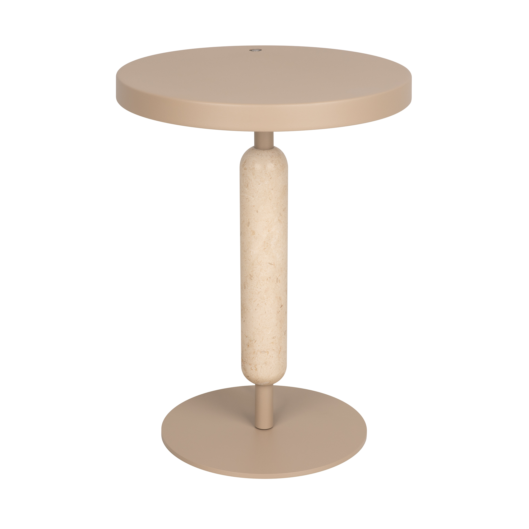 Настольный светильник ALYSS. С изменяемой цветовой температурой 2700/3200/4000К. Цт переключается коротким нажатием на сенсорную кнопку на плафоне, диммирование происходит за счет ее удержания. Мощность 5 Вт, св. поток 195 лм, 39 лм/Вт, CRI>92, угол 110°, напряжение питания 230 В. Бежевый корпус из алюминия, декоративная вставка из мрамора, степень защиты IP20. Размер: диаметр 225 мм, высота 300 мм. Пульсация <1%.