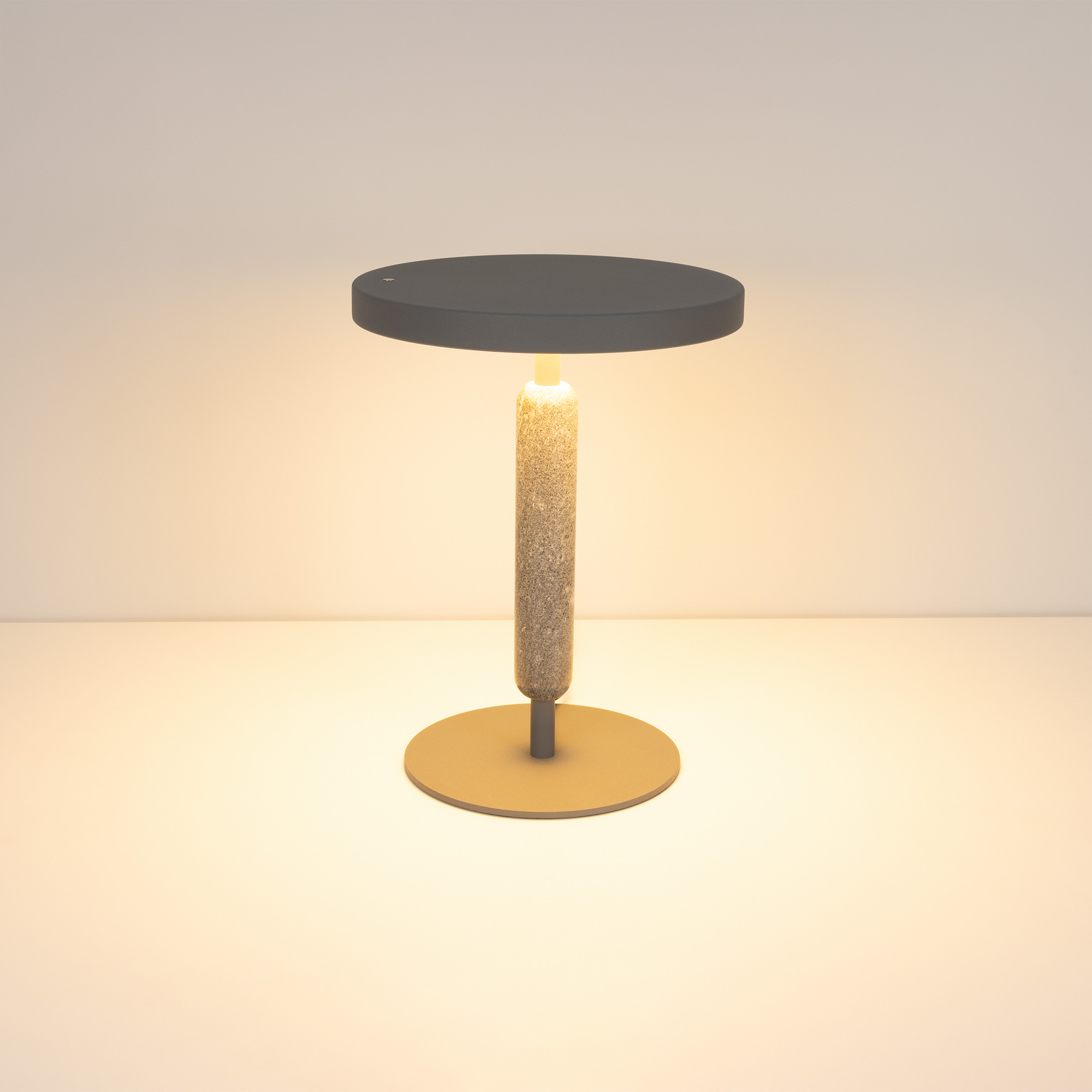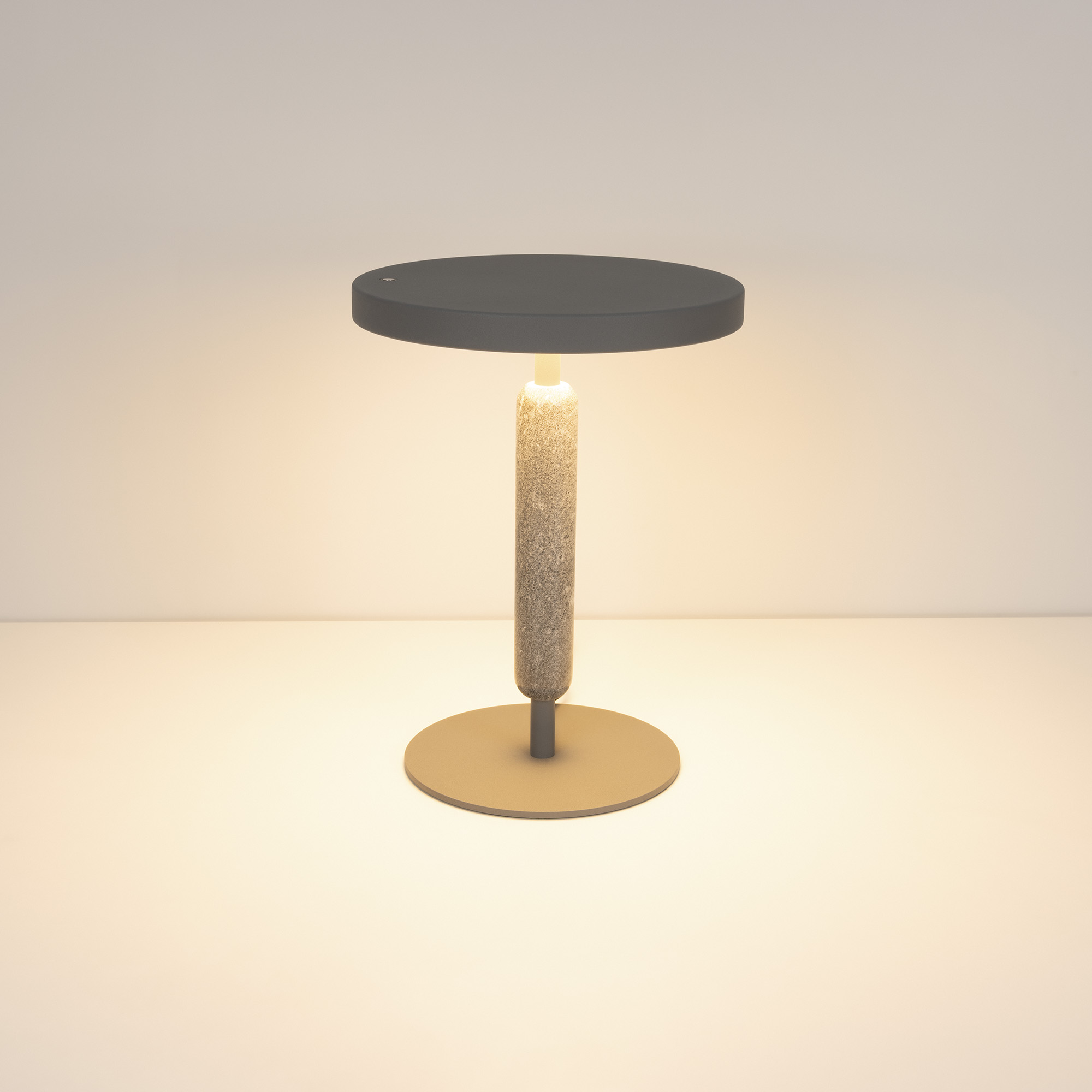 Настольный светильник ALYSS. С изменяемой цветовой температурой 2700/3200/4000К, переключается коротким нажатием на сенсорную кнопку на плафоне, диммирование происходит за счет ее удержания. Мощность 5 Вт, св. поток 195 лм, 39 лм/Вт, CRI>92, угол 110°, напряжение питания 230 В. Темно-серый корпус из алюминия, декоративная вставка из мрамора, степень защиты IP20. Размер: диаметр 225 мм, высота 300 мм. Пульсация <1%.