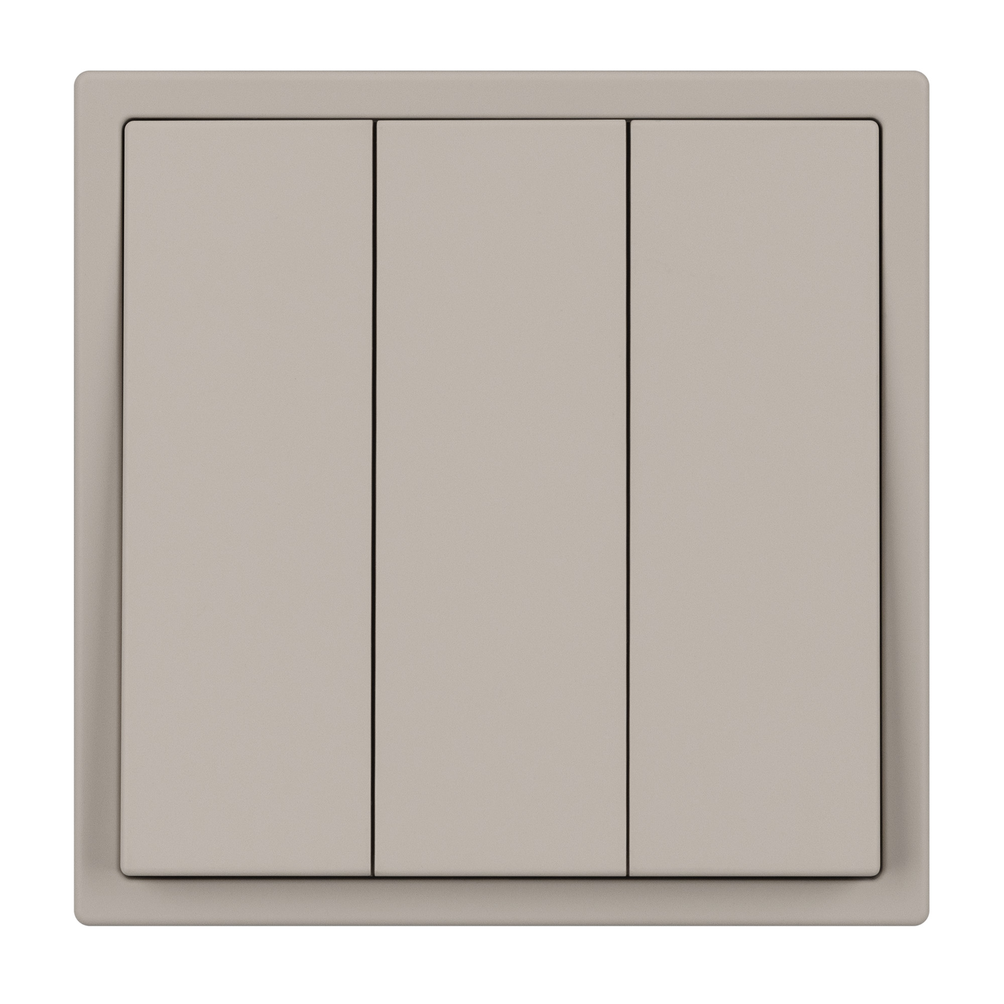 Механизм выключателя света клавишный на 1 пост 3 клавиши (непроходной). Цвет - кашемир, с Soft-Touch поверхностью. Без фронтальной рамки. Уровень пылевлагозащиты IP20. Выключатель устанавливается в стандартный круглый подрозетник круглого сечения диаметром 60мм. Габаритные размеры: длина 71 мм, ширина 71 мм, высота 52 мм. Гарантийный срок 10 лет.
