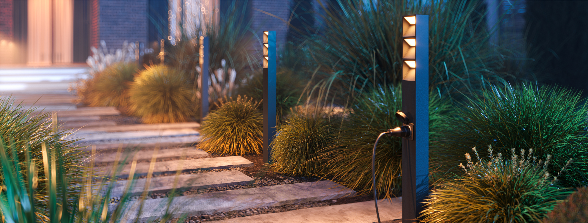 Стильное ландшафтное освещение дорожек в парке, придомовых территорий, террас и лужаек. Уличный светильник с оригинальным световым модулем создает равномерную подсветку с теплым цветом свечения (3000 K) и высоким качеством передачи естественных цветов растений, ландшафта и декораций (CRI>80).