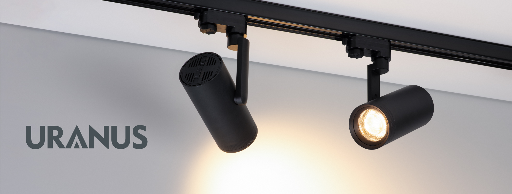 URANUS - серия светильников для установки в 3-фазный шинопровод (трек), с возможностью изменения цветовой температуры, мощности, а также с регулируемым углом излучения.