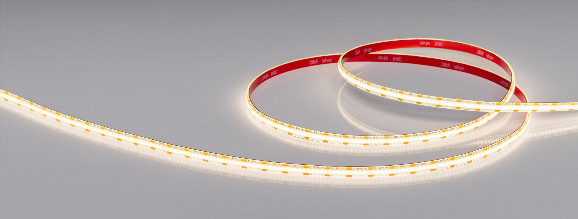 Бескорпусные COB-ленты с эффектом сплошной линии света даже без применения рассеивающих экранов предназначены для декоративной подсветки интерьеров, ванных комнат и витрин.