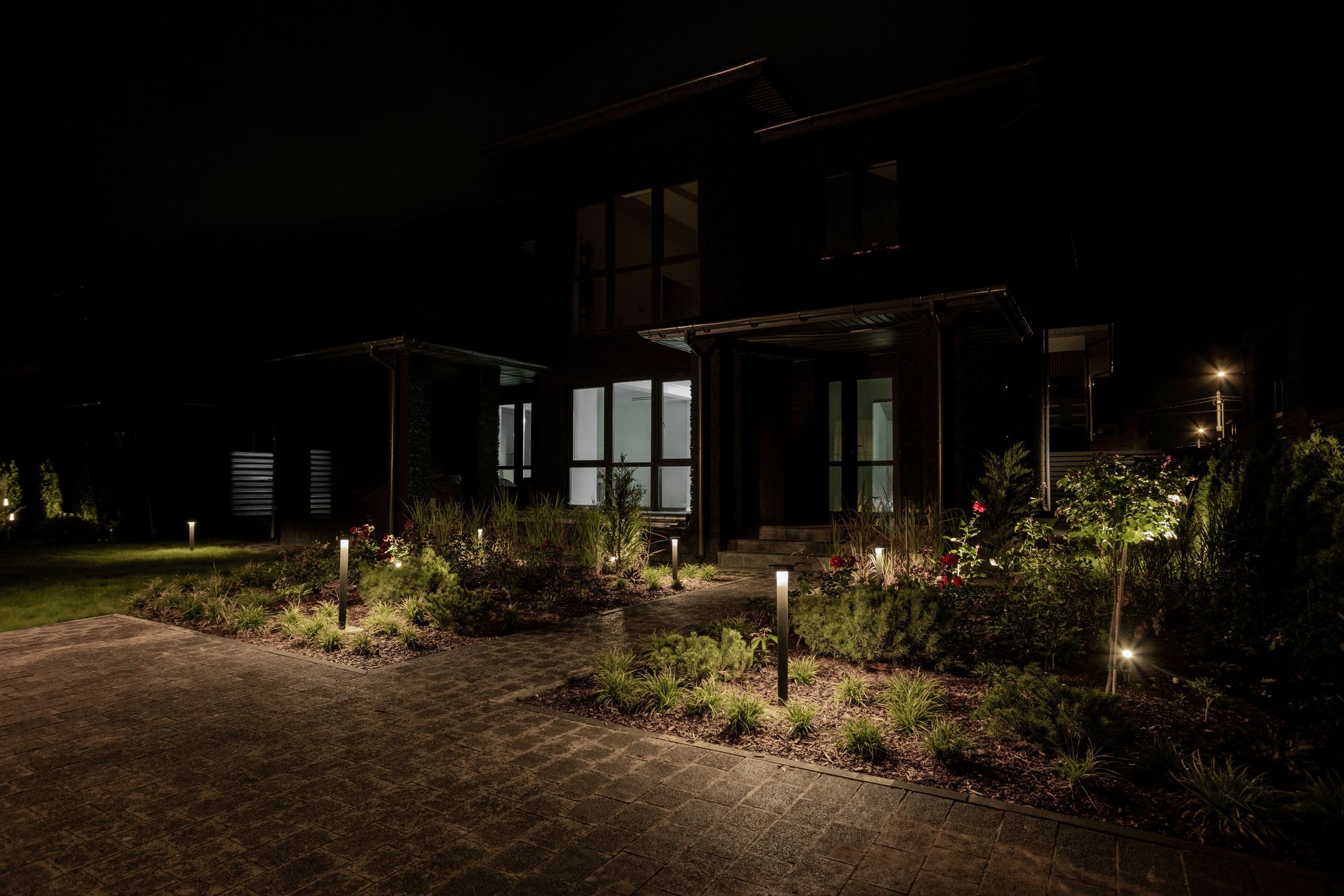 Рабочий слой освещения на участке помогает припарковать машину, безопасно пройти по участку и не получить травму. Он также выполнен при помощи светильников SWAMP-BOLL, расставленных по периметру освещаемой площадки.