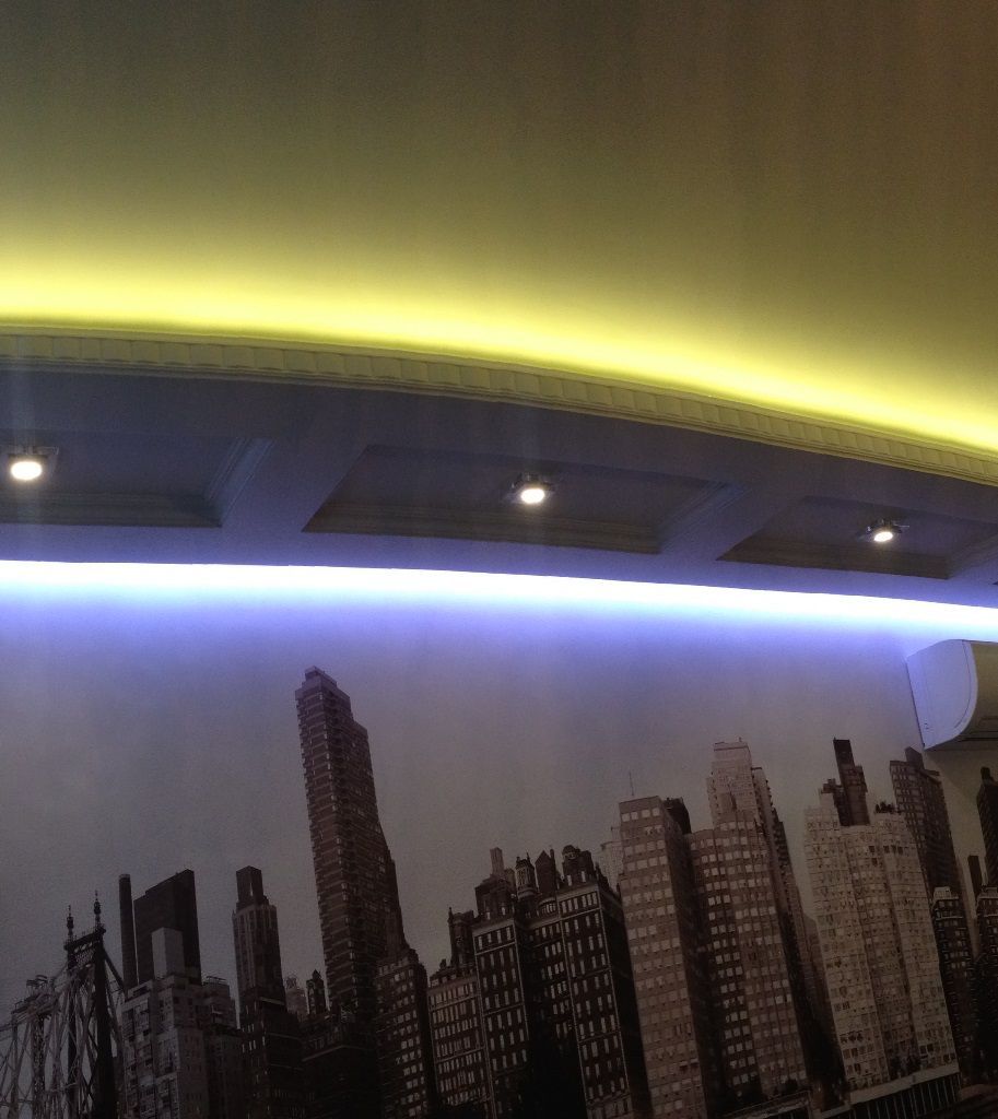 Декоративная светодиодная подсветка потолка в различных помещениях квартиры. Для подсветки применялось светодиодное оборудование торговой марки arlight®.