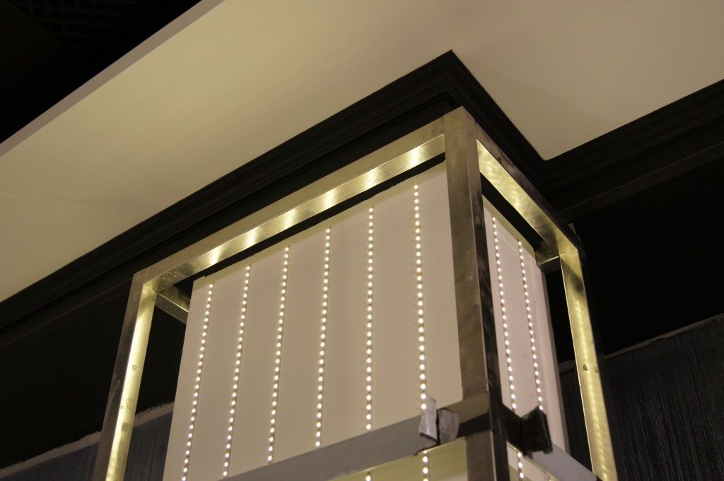 Для подчеркивания изысканности и утончённости всего интерьера было создано мягкое и равномерное освещение в каждой зоне клуба, при помощи светового оформления выделено чёткое зонирование пространства залов, были спроектированы и разработаны оригинальные люстры для основного освещения. Эти задачи решены с применение светодиодной ленты, диммеров и блоков питания продукции arlight®.