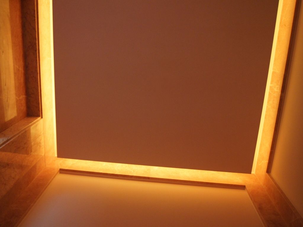 Светодиодное освещение было установлено в загородном доме, интерьер которого выполнен в классическом стиле. Декоративная контурная подсветка, установленная за полиуретановыми карнизами, придала внутренней обстановке дома сказочность и неповторимость.