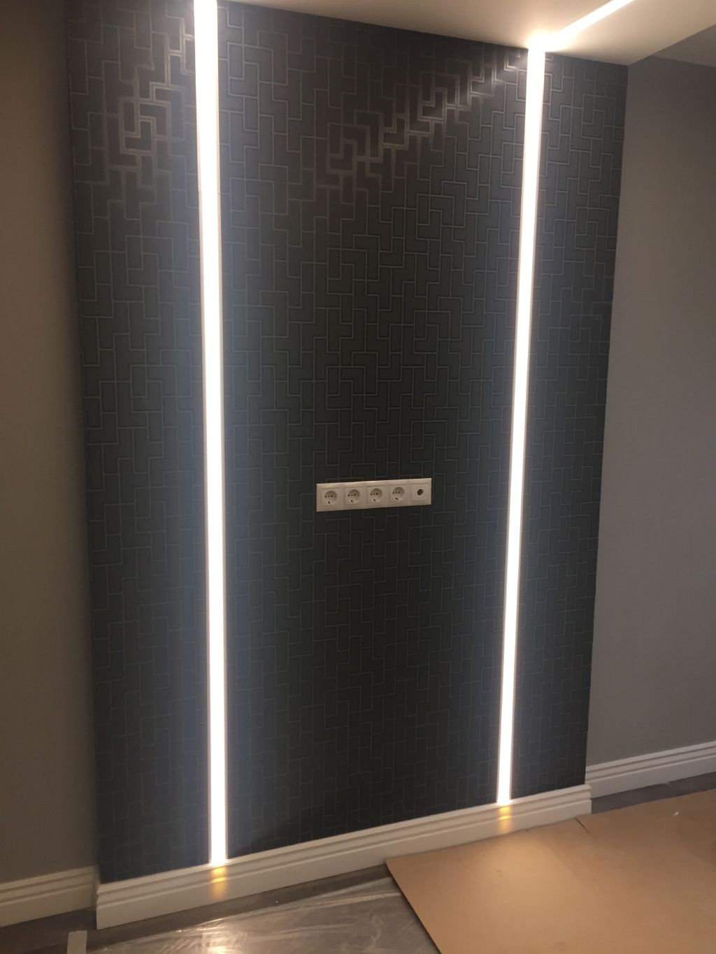 В данной квартире был выполнен проект по созданию линий света и организации подсветки потолков.
