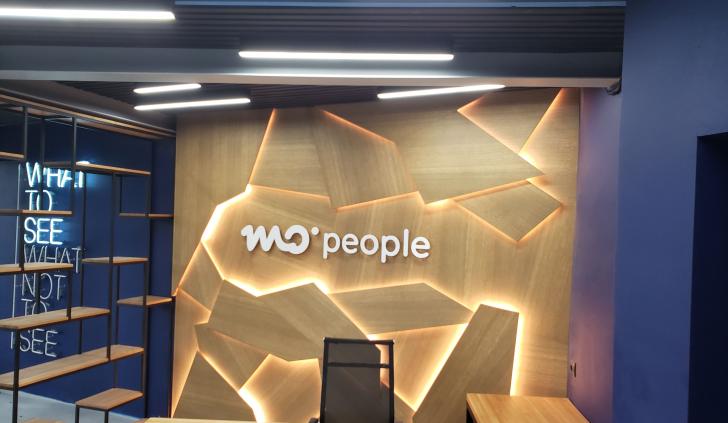 В дизайне входной группы использованы эффектные и объемные 3D-панели с декоративной светодиодной подсветкой, которая сделала композицию еще более оригинальной. Для подсветки панелей используется светодиодная лента с высоким индексом цветопередачи (CRI>98) и теплым белым свечением. Теплый цвет прекрасно гармонирует с деревянной текстурой панелей. В зоне ожидания подсветка реализована RGB-лентами, цвет свечения которых можно менять, экспериментируя и создавая особую атмосферу, актуальную для творческой студии.
